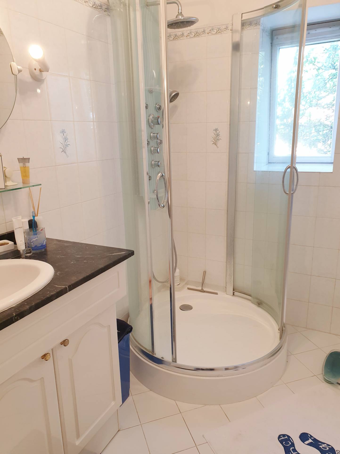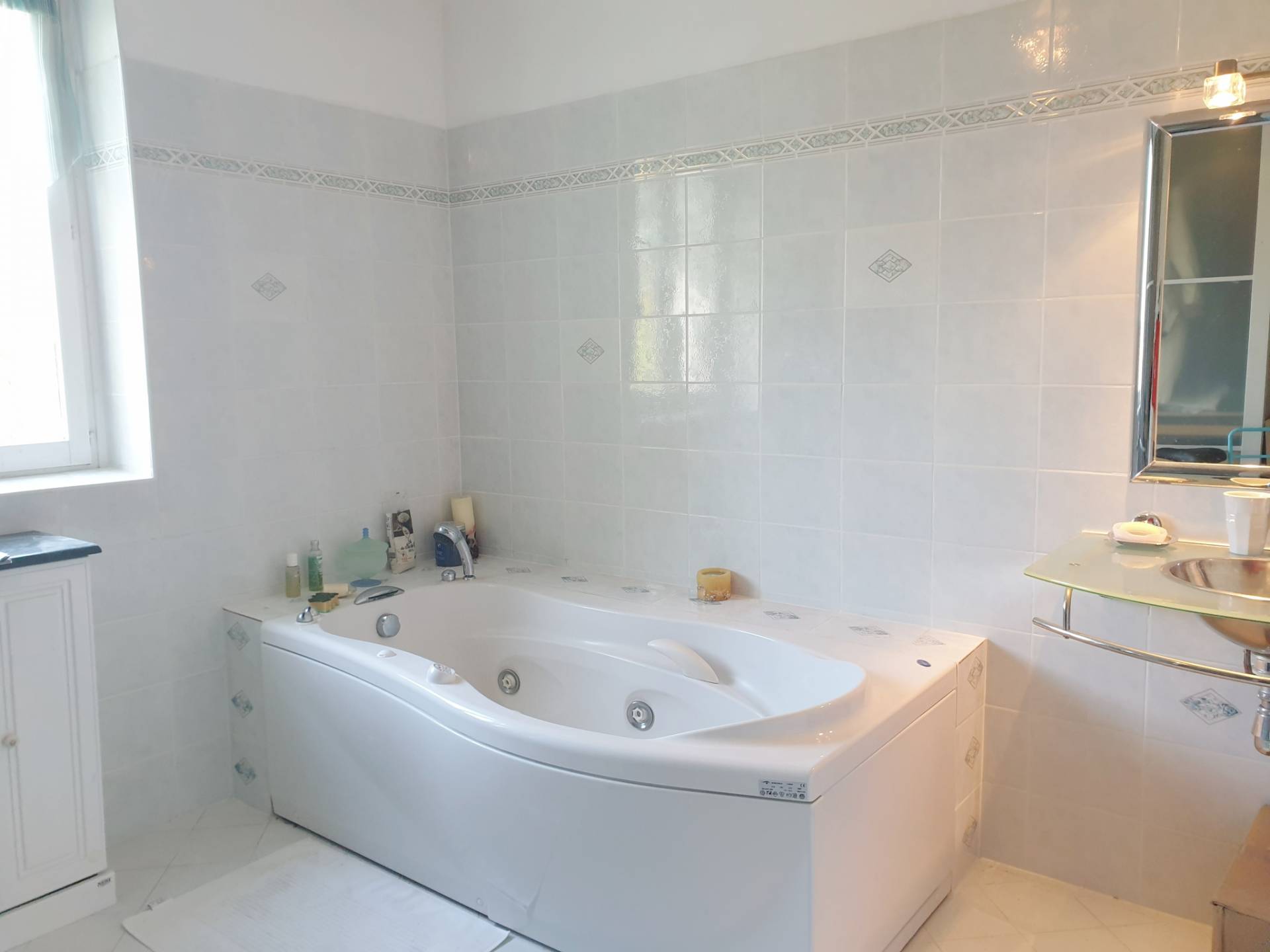 A l’étage : 3 chambres, salle d’eau, suite parentale avec baignoire balnéo.