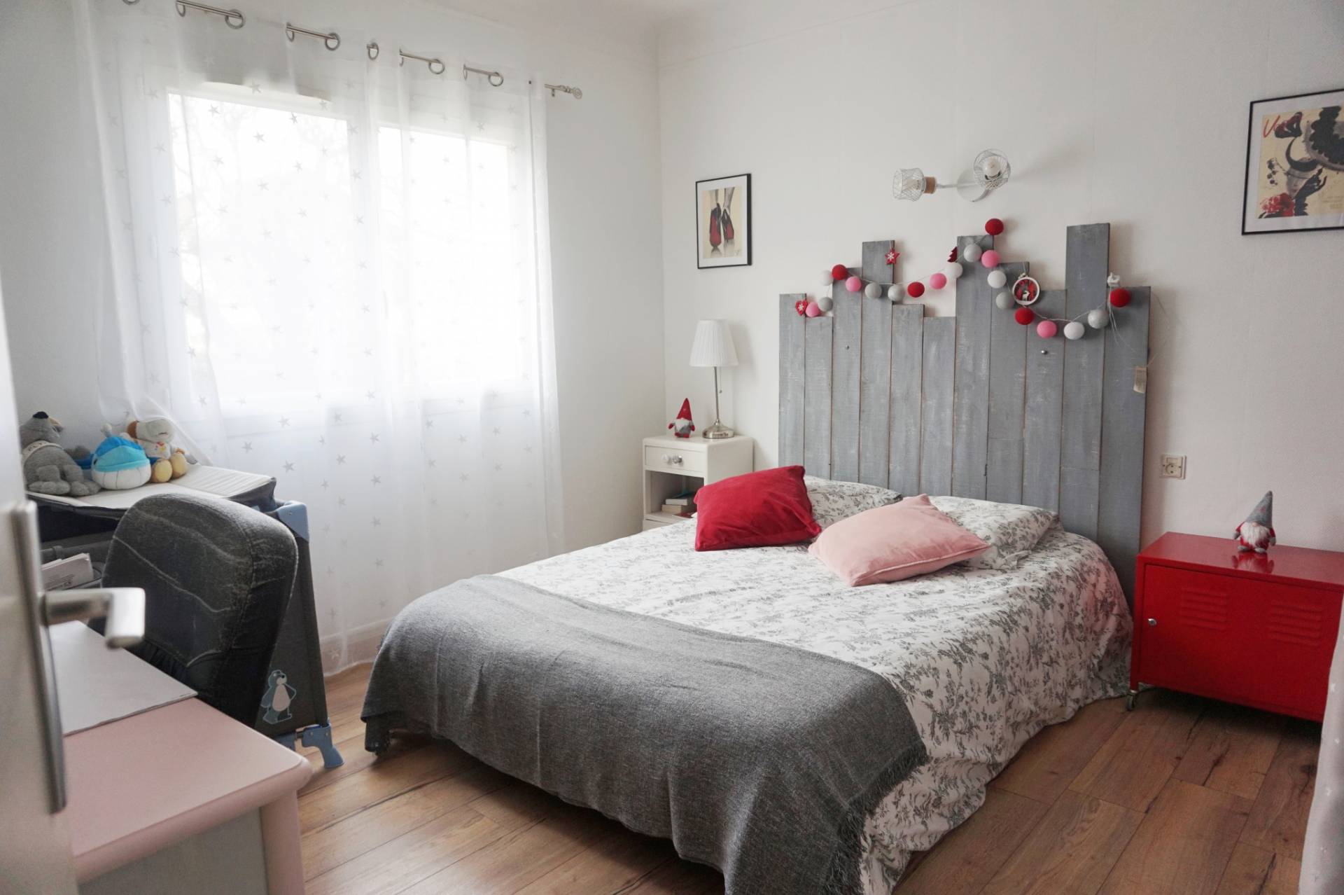 Rez-de-chaussée : entrée, cuisine, séjour double de 48 m² donnant sur la véranda, dégagement avec placards, 3 chambres, salle de bains, wc.